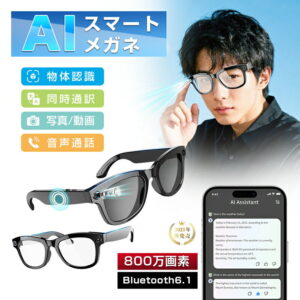 【1年保証付き】スマートグラス カメラ付き 録画 録音 映像 スマートメガネ iPhone 眼鏡 音楽再生 通話可能 Bluetooth5.3 日本語説明書付 近視用 サングラス マイク内蔵 AIワイヤレスメガネ 500W解像度 アプリ記録 高音質 誕生日 プレゼント ★収納ケース無料差し上げ★新世代!スマートグラス 映像 カメラ付き 翻訳 録画 録音 スマートグラス 眼鏡 録画 カメラ サングラス カメラメガネ カメラ付きメガネ カメラ搭載 1. 高性能カメラ機能:500W解像度、1080Pハイビジョン撮影(手ぶれ補正付き)、AIピクセル補正で高画質な写真動画を実現2. スマート音声システム:Bluetooth 5.3対応、内蔵イヤホンスピーカー(複合膜ラ喇叭採用)で音楽再生や通話を快適に、高精度音声認識とリアルタイム翻訳機能3. 多用途AIサポート:パノラマ型インテリジェント検索、画像認識(品物メニュー植物など自動識別)、WiFi 5GHz対応で高速通信4. 快適設計:ブルーライトカット機能、開放型ヘッドフォンで周囲音とシームレス切り替え、騒がしい環境でも明瞭な音声【スマートAl、生活の流れをリード】など業界をリードするAlビッグモデルにアクセスし、スマート境界を再定義します。