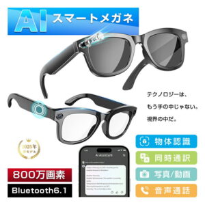 スマートグラス カメラ付き Bluetooth6.1 ワイヤレスオーディオグラス AIメガネ AI検索 800万画素 撮影 録画 録音 翻訳機 音楽再生 ハンズフリー通話 最大7時間再生 アプリ レンズの交換可能 2026年新型 軽量 男女兼用 ブルーライトカット【PL保険加入済み製品・安心】・・・