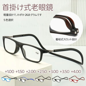 即納 紛失防止老眼鏡 強力マグ スマート 首掛け式老眼鏡 首掛け マグネット 老眼鏡 マグネット 首かけ 超軽量 シリカゲル 折りたたみ 軽いスマートグラス PCメガネ 軽い コンパクト スタイリッシュ男女用 鼻めがね 丈夫 掛けやすい 40代 50代 老眼鏡 全5色・・・