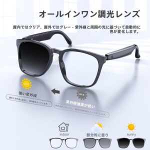 店長おすすめ!!一部分短納期 スマートグラス Bluetooth5.3 変色調光サングラス ワイヤレスオーディオ オープンイヤー 内蔵マイク UV400 ブルーライトカット AI 翻訳 音楽通話対応・・・