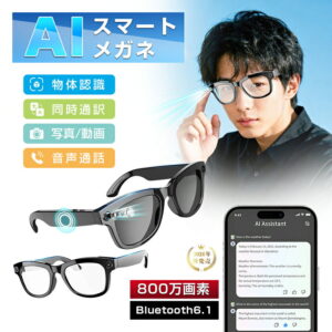 スマートグラス カメラ付き Bluetooth6.1 ワイヤレスオーディオグラス AIメガネ AI検索 800万画素 撮影 録画 録音 翻訳機 音楽再生 ハンズフリー通話 最大7時間再生 アプリ レンズの交換可能 2026年新型 軽量 男女兼用 ブルーライトカット【PL保険加入済み製品・安心】・・・