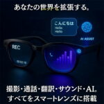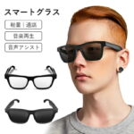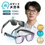 AIスマートグラス 500万画素 HDカメラ内蔵 Bluetooth 5.3対応 ハンズフリー通話 高精度AI翻訳 リアルタイム音声認識 手ぶれ補正 WiFi 5GHz 超軽量デザイン 長時間駆動 最大4時間 ブルーライトカット 開放型イヤホンスピーカー 画像認識 旅行 会議 講演 通勤 日常用